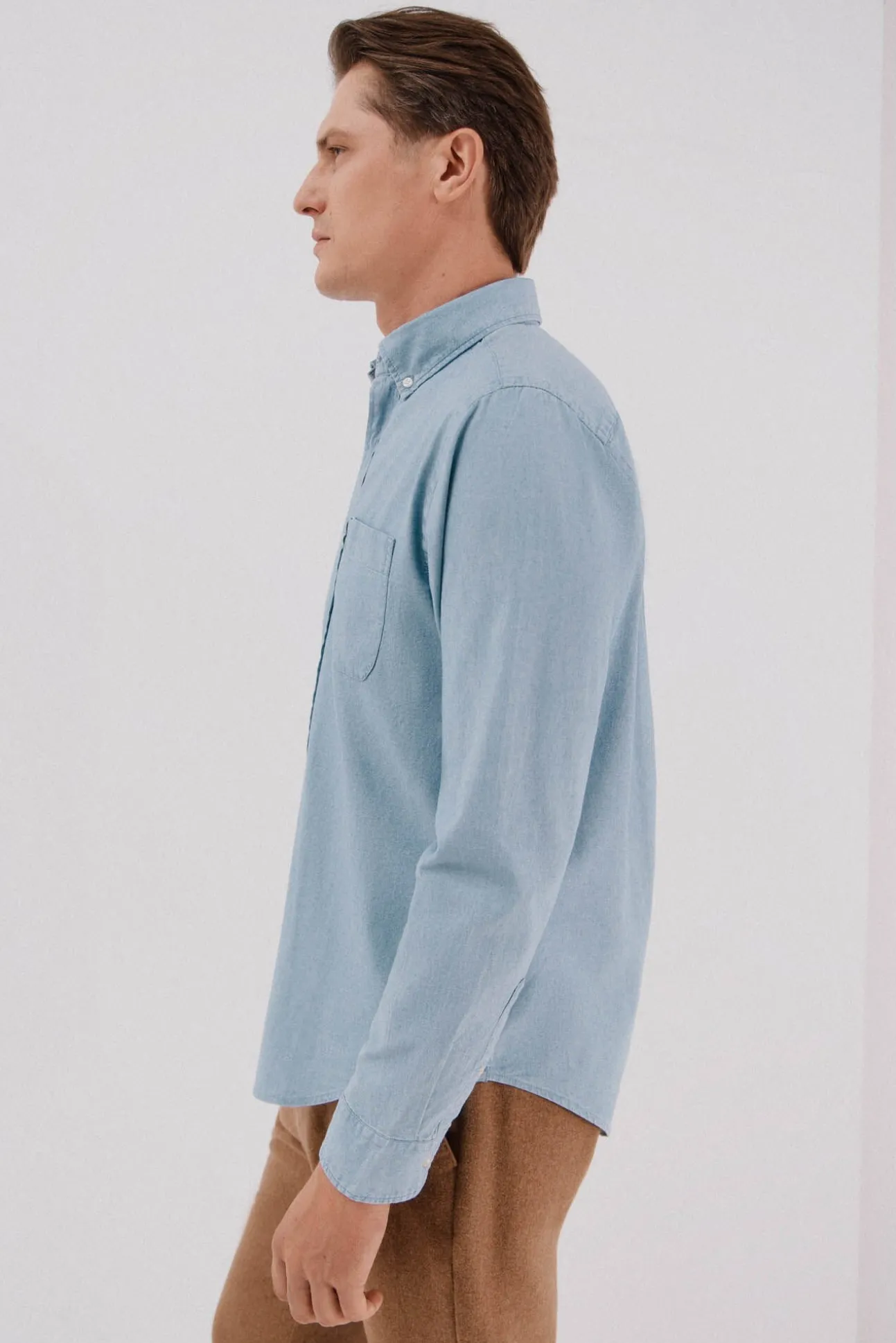 -Cuello con botones, bolsillo en pecho