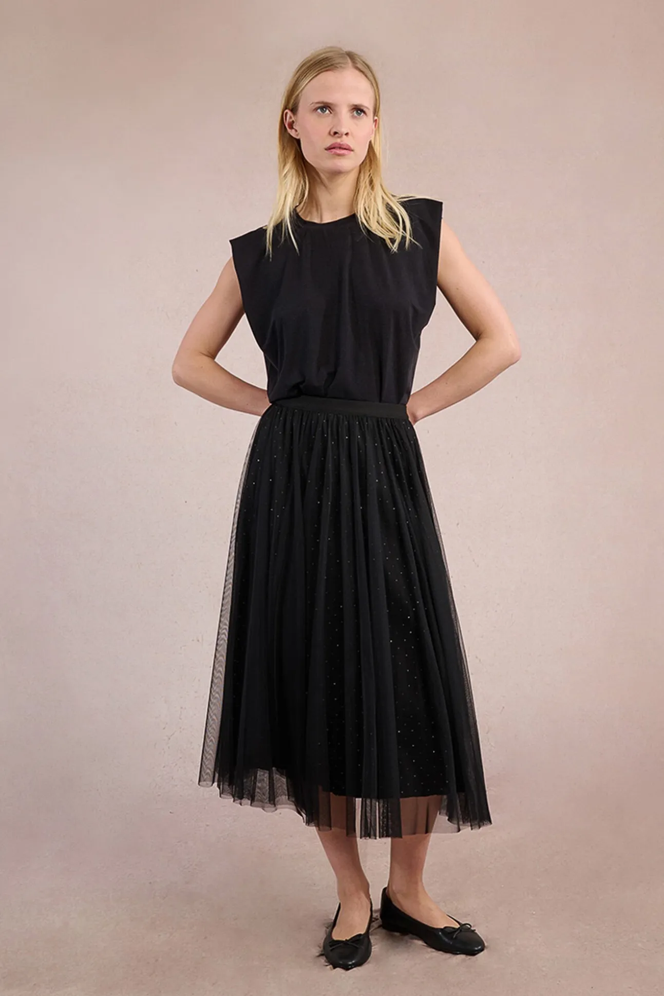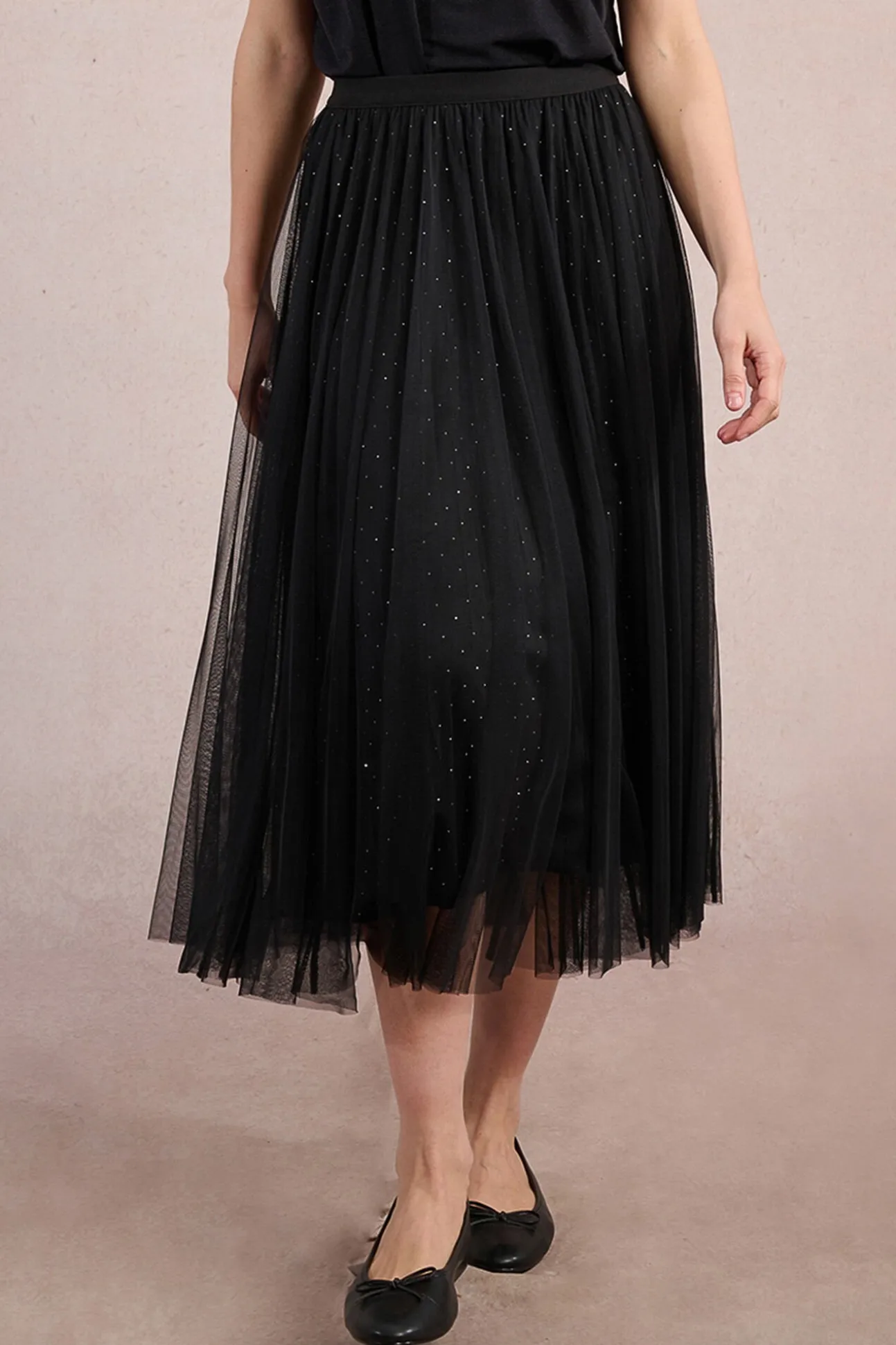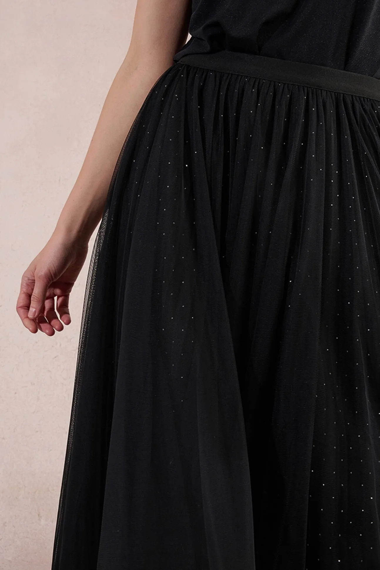 – Modelo en tejido de tul, de corte amplio.