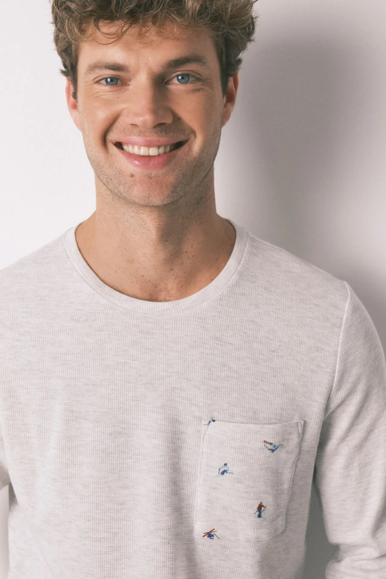 – Camiseta de cuello redondo, tapeta con botones y bolsillo de plastrón en el pecho.