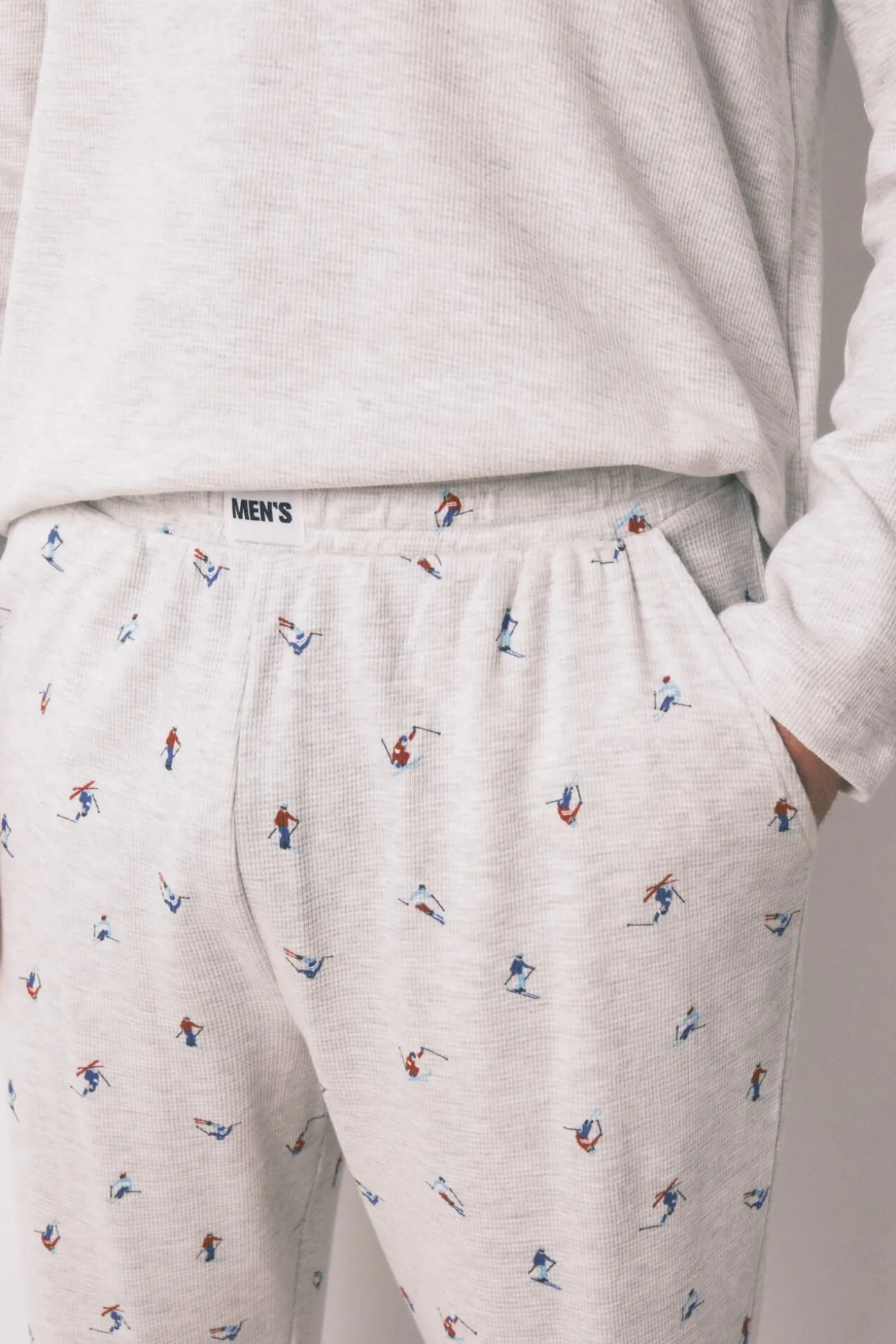 – Pantalón skinny con estampado allover, con cinturilla elástica, falsa bragueta con botones y bolsillos laterales.