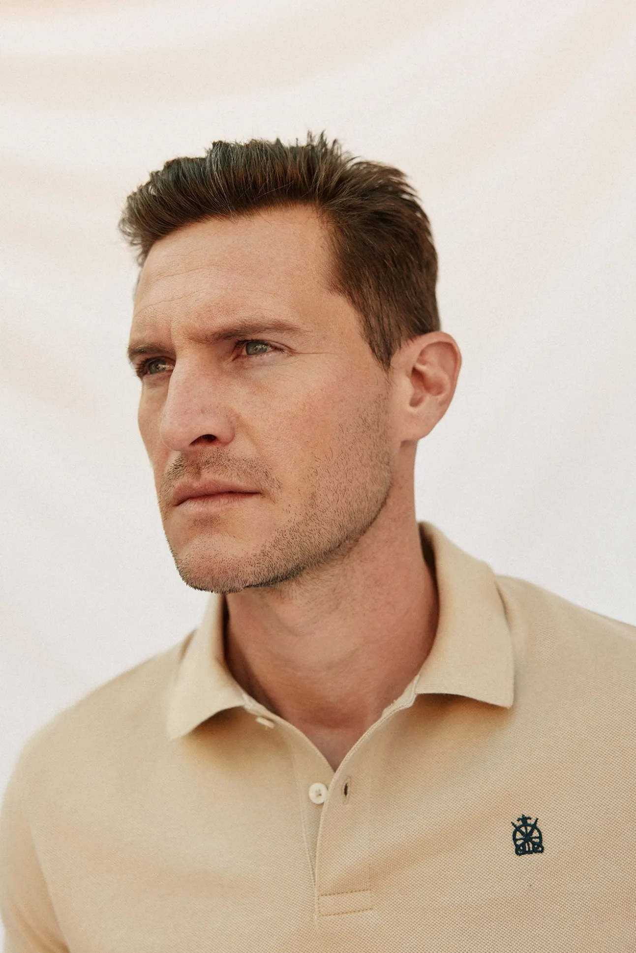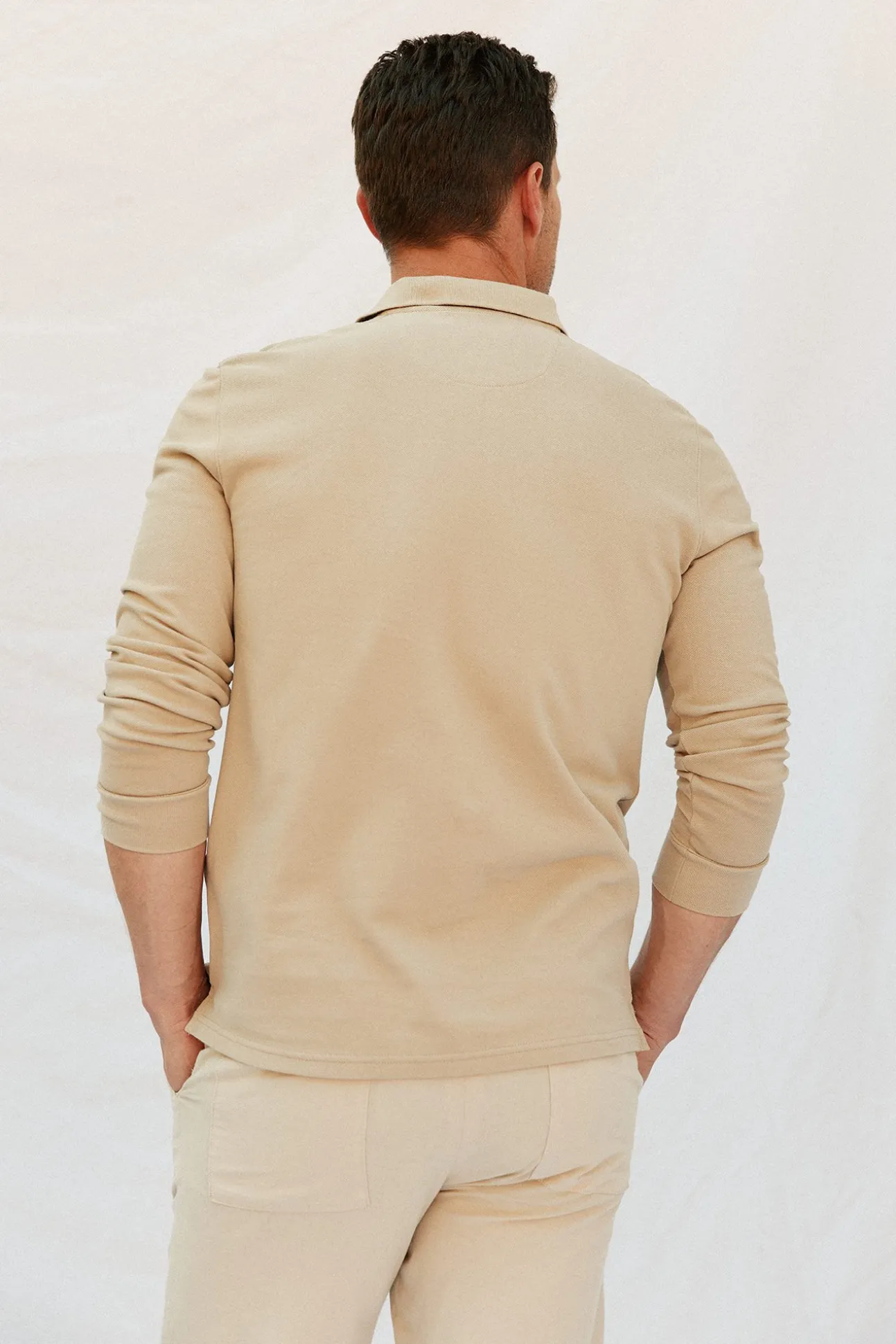-Manga larga, tapeta con botones y logo bordado en el pecho