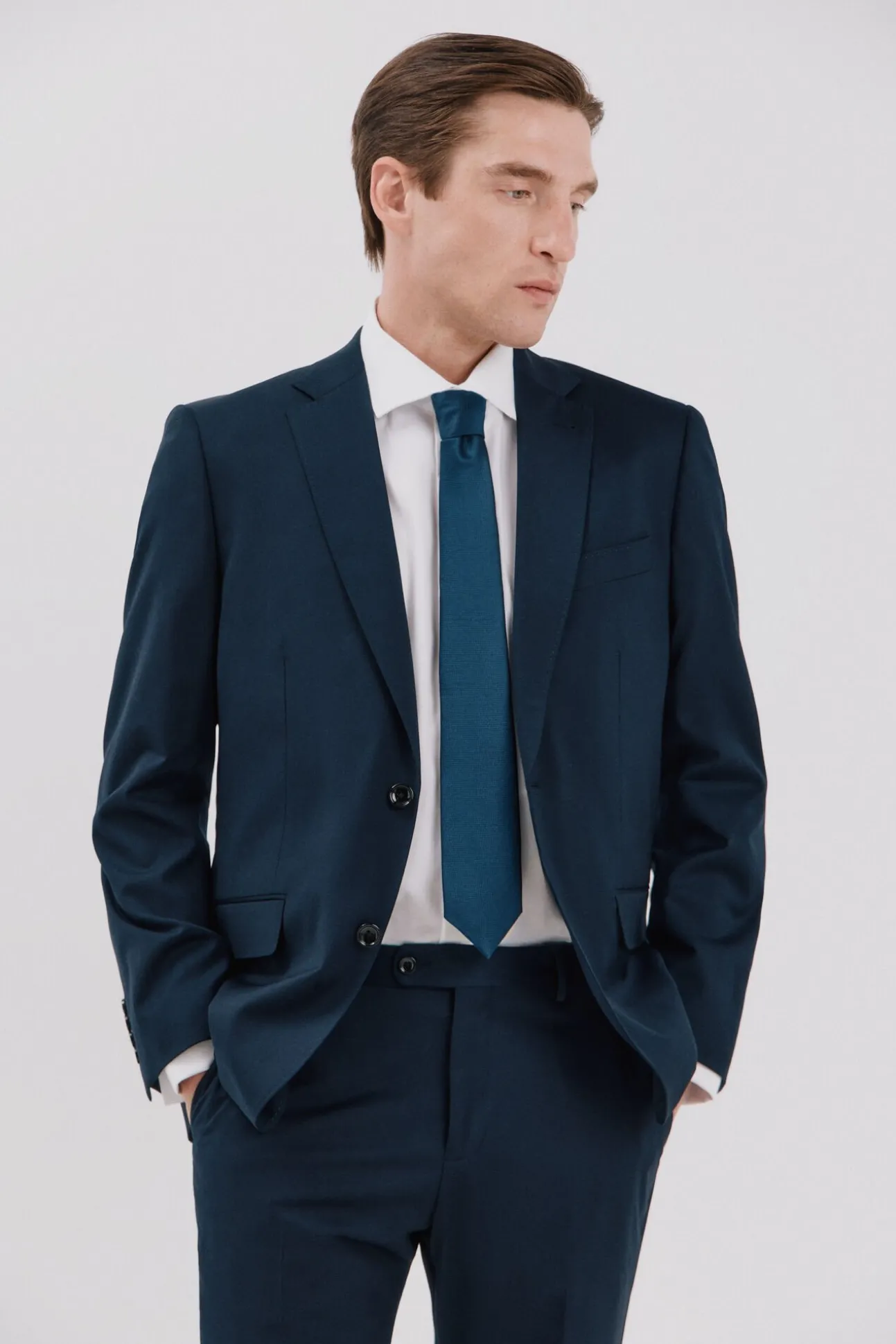 – Dos botones. Solapa muesca. Dos aberturas traseras. Forrada y bolsillos interiores