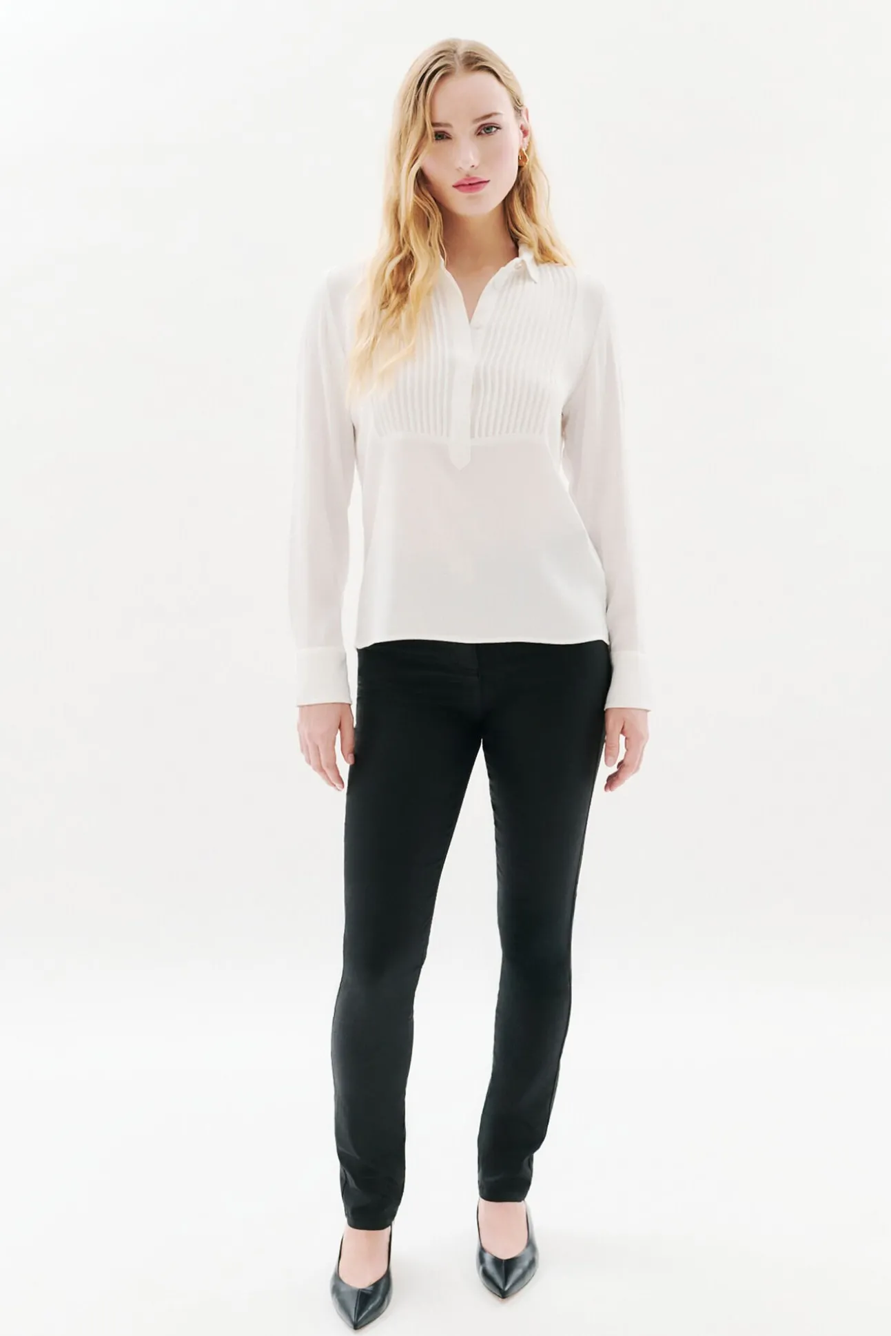-La blusa Carlota puede combinarse con un pantalón ajustado y un cinturón elegante para estructurar la silueta