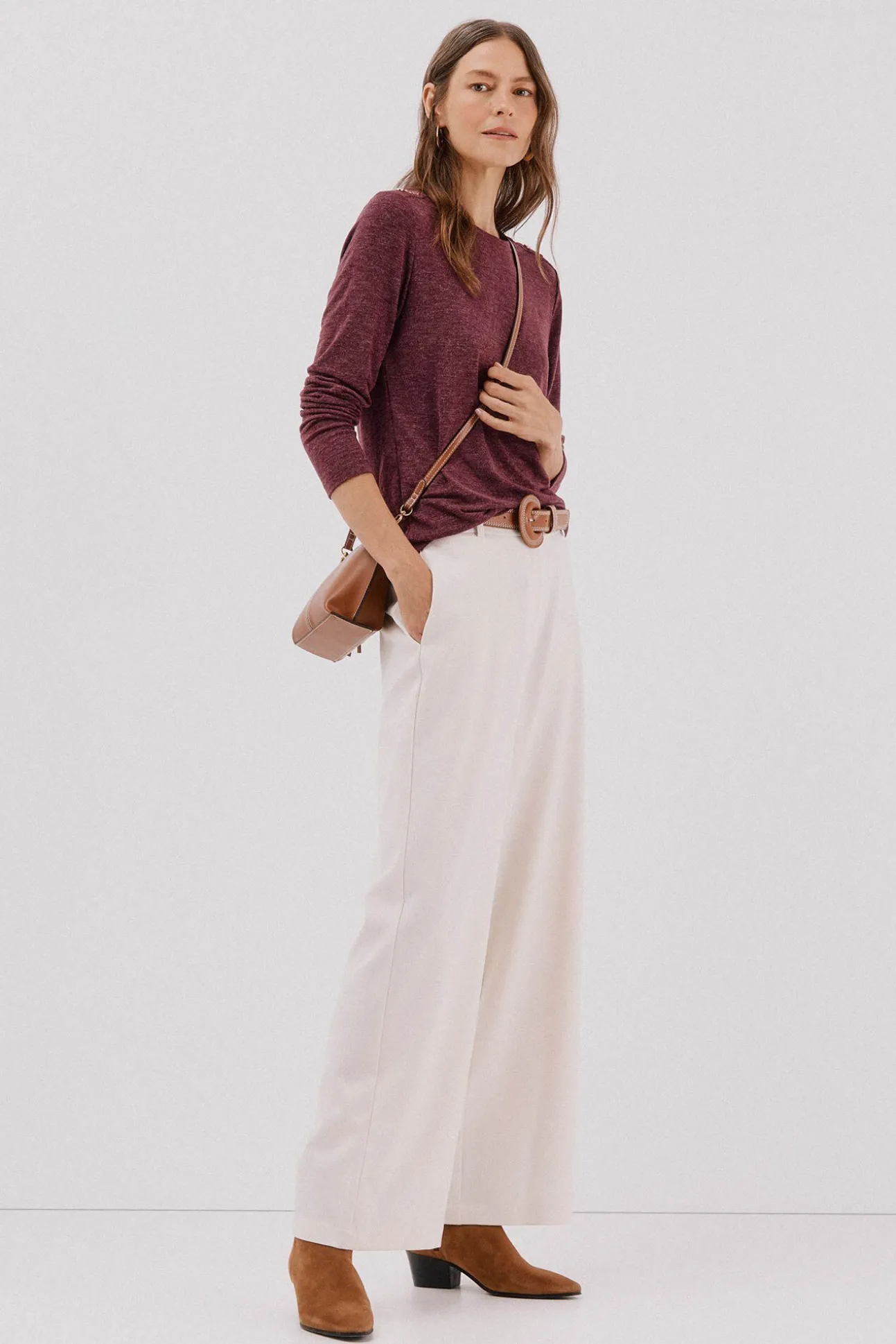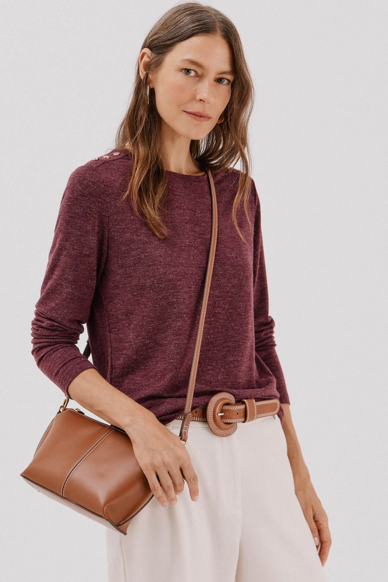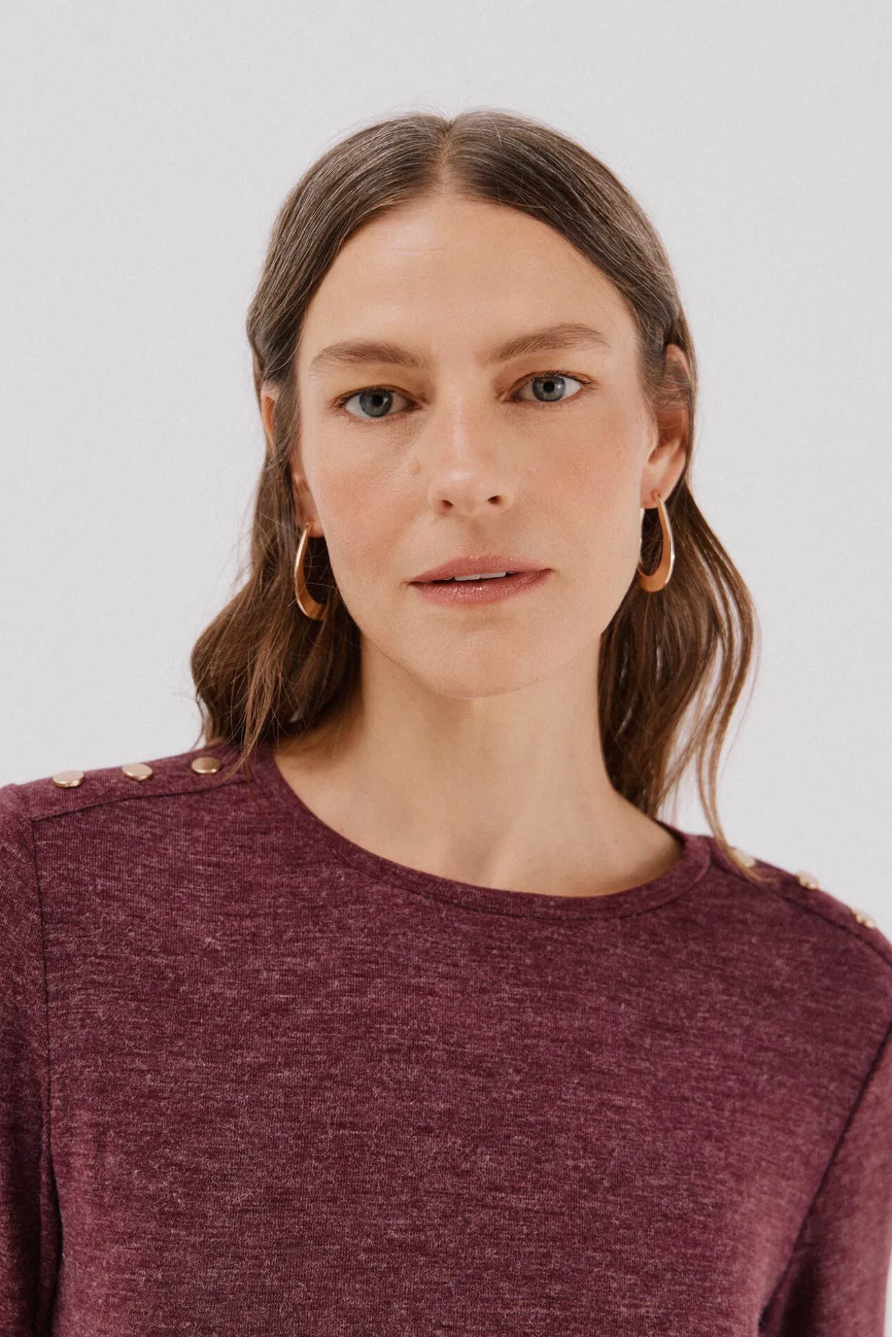 -Escote redondo con botones dorados en hombro