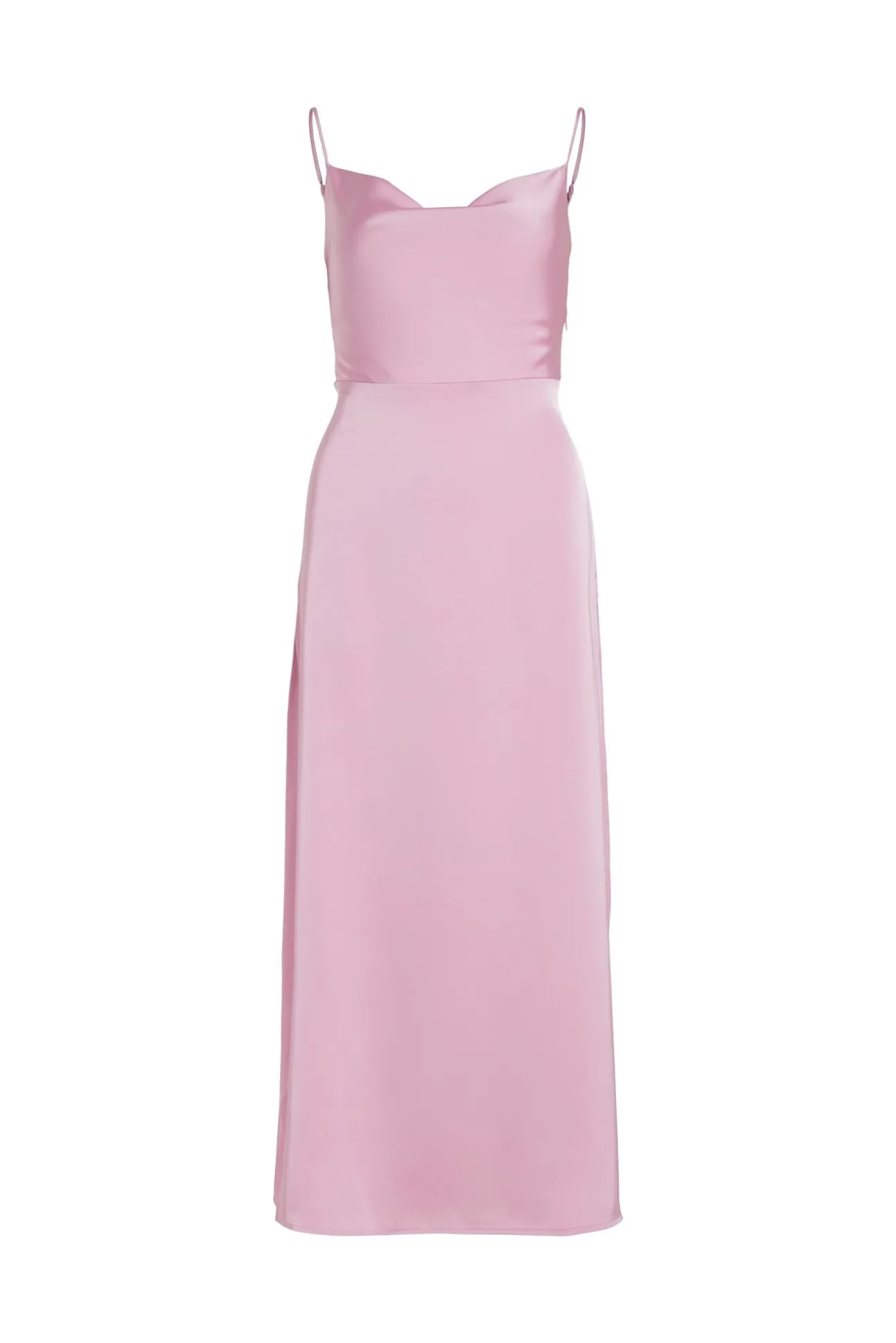 Vestido largo satinado escote drapeado